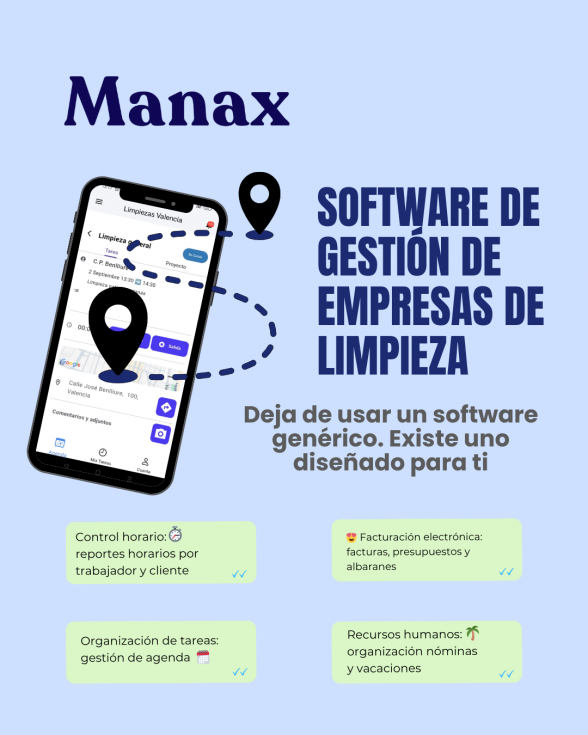 Manax es un software diseñado específicamente para empresas de Limpieza que buscan digitalizar y optimizar su día a día.